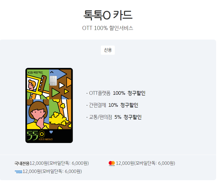 그러나 디즈니플러스만 대상으로 놓고 봤을때 가장 강력한 카드는 KB카드의 톡톡O카드입니다.